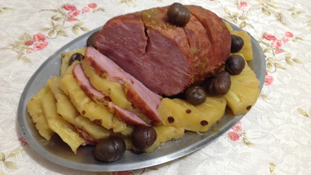 Ás vezes coloco o abacaxi depois que tirei o papel alumínio para ele ficar dourado.