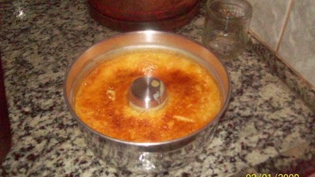 Colocar na forma (grande) já com a calda e deixar em forno alto por, aproximadamente, 40 minutos.