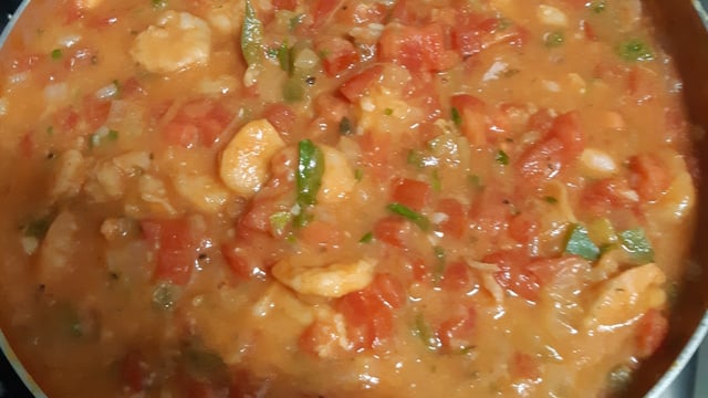 Deixe cozinhando por mais 5 minutos o camarão para que o molho apure no fogo baixo.