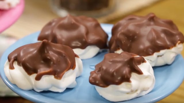E que tal fazer suspiro com chocolate? Uma delícia, não é? Experimente mergulhar as pontas do suspiro em chocolate derretido. Fica uma delícia!