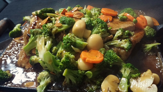 Dicas de preparo: Chapa de ferro e panela de ferro em fogo médio. Os legumes tem de ficar firmes. Acompanhamentos: Arroz, batata frita, pão grelhado, farinha e vinho tinto.
