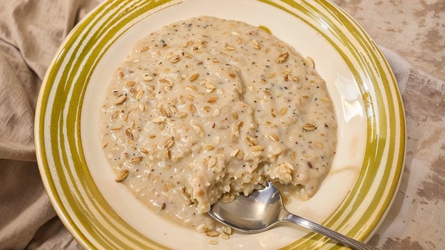 Entre 5 e 6 minutos depois, já estará em ponto de mingau.