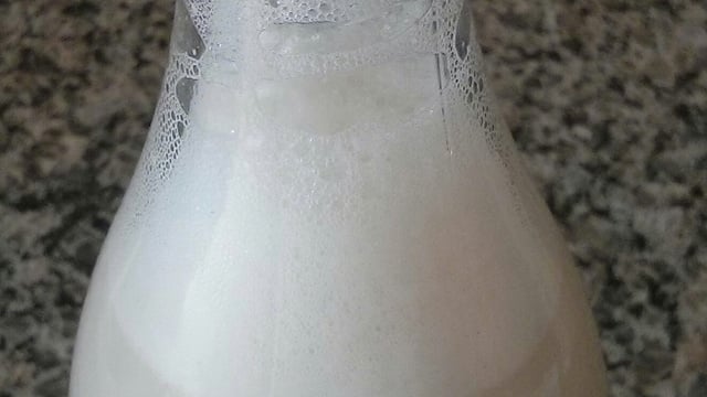 Se a garrafa de vidro for de 1 litro, use menos leite para caber o leite fermentado.