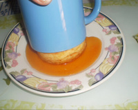 Coloque a mistura na xícara com a calda e coloque no microondas por 1 minuto e 30 segundos.