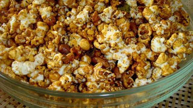 Quando terminar de estourar, despejar em uma travessa e polvilhar com cacau e canela.