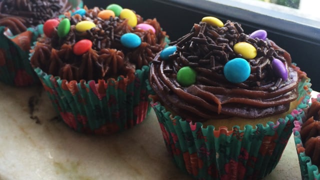 Decore os cupcakes. Você pode colocar confeitos coloridos e chocolate granulado por cima se desejar.