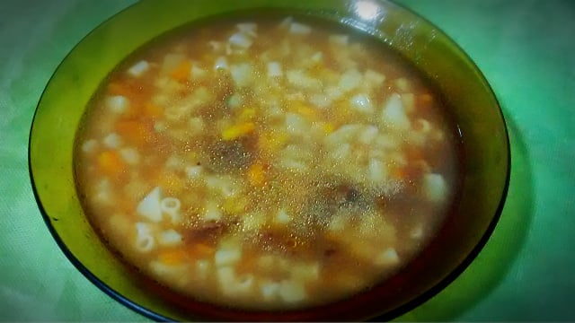 Em uma panela, refogue o alho, acrescente a carne e 1 cubo de caldo knorr.