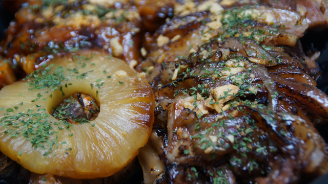 Que tal preparar um pernil assado com abacaxi? Este prato é uma combinação irresistível de pernil suculento com o toque tropical do abacaxi. A marinada, feita com alho, cebola, ervas frescas, vinagre de vinho branco e folha de louro, confere uma profundidade de sabor incomparável à carne. Após marinar o pernil por 12 a 14 horas nessa mistura de temperos, ele é assado no forno com camadas de lombo de porco, rodelas de abacaxi e a marinada, mantendo toda a suculência e aroma enquanto cozinha lentamente. O resultado final é um prato suculento e aromático, perfeito para celebrar momentos especiais, como a ceia de Natal, ou simplesmente para desfrutar de uma refeição saborosa em família. Este pernil assado com abacaxi certamente impressionará com sua combinação única de sabores.
