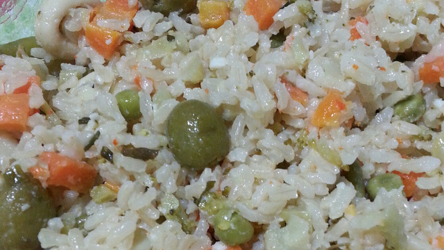 Por fim, misture o arroz com os legumes refogados e sirva em seguida.