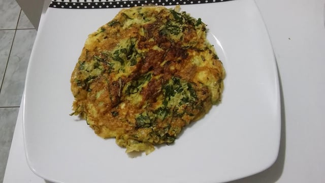 Coloque os ovos batidos em cima da couve já refogada.