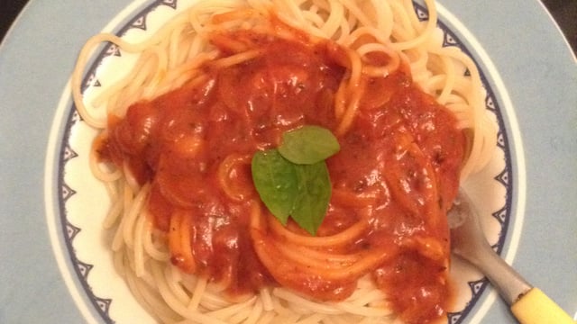 Escorra o macarrão e adicione o molho e, para enfeitar, acrescente o manjericão que fica uma delícia.