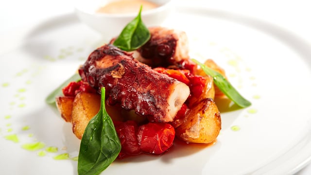 Quando estiver quente, assar o polvo 3 minutos de cada lado.