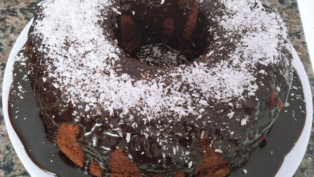 Faça sua cobertura de chocolate, coloque em cima do seu bolo e está pronto.