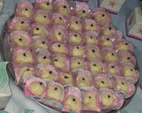 Leve a massa à geladeira por 2 minutos, unte as mãos com óleo de coco ou margarina sem sal e é só modelar a massa como desejar e passar no coco ralado.