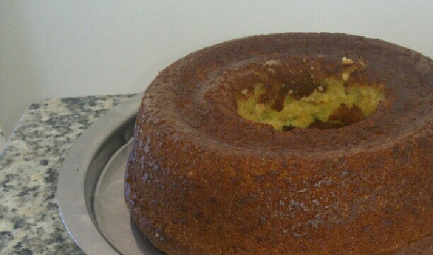 Despeje a massa em uma assadeira retangular untada com óleo e farinha de trigo e leve ao forno médio (180° C), preaquecido, de 25 a 30 minutos ou até que uma palito saia limpo ao ser espetado na massa.