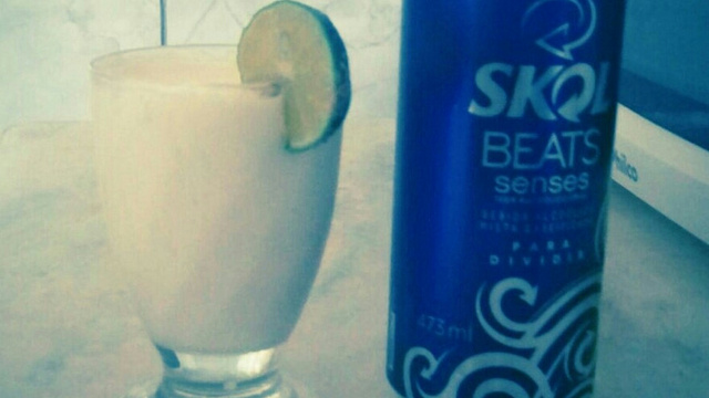 Bata no liquidificador a skol beats, o gelo, o suco do limão e o leite condensado em velocidade máxima.