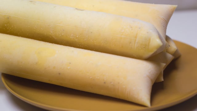 Depois, encha os saquinhos e leve para o congelador até ficarem durinhos.
