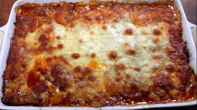 E então, monte a lasanha com uma camada de massa, uma de molho e outra de queijo.