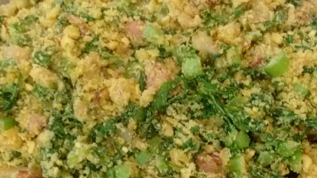 Adicione os ovos, misturando bem até dourar.