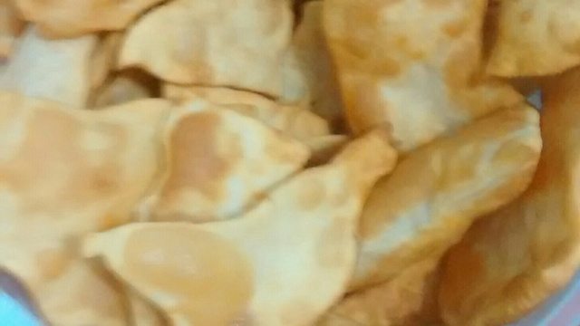 Frite os pedaços da massa em óleo bem quente até que comecem a dourar.