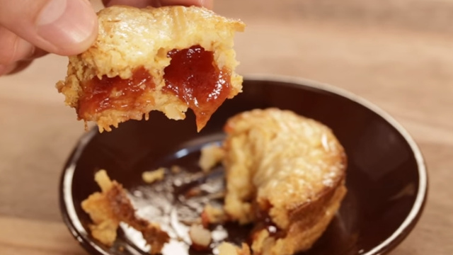 Coloque quadradinhos de goiabada no meio da massa que será levada ao forno.