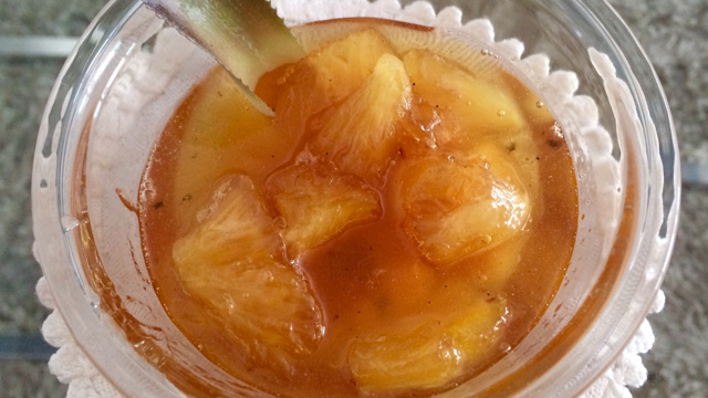 Após a calda alcançar o ponto (ficar da cor de mel, mas não grossa) acrescente os cubinhos de abacaxi.