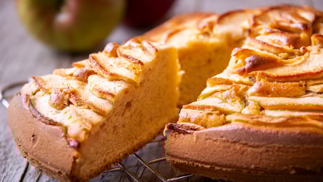 Junte os ovos, as maçãs e misture.