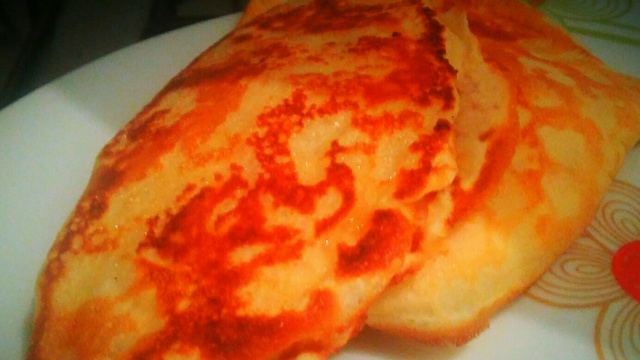 Despeje a massa sobre uma frigideira antiaderente e coloque o recheio de sua preferência.
