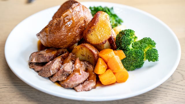 Após esse tempo, fatie a carne, corte as batatas e acrescente o restante do molho sobre a carne e as batatas.
