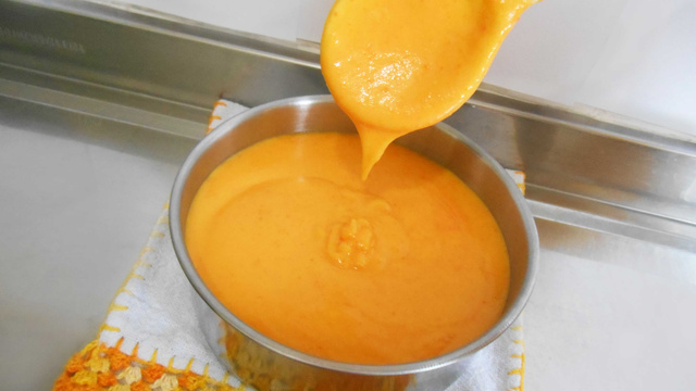 Depois de cozidos, junte no liquidificador as cenouras, a manteiga, o sal, a mostarda e o leite.