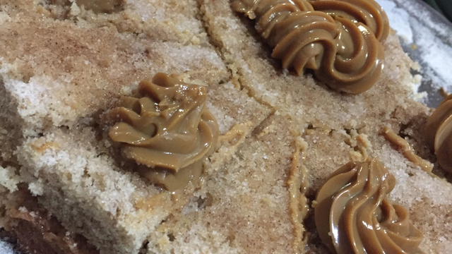 Espalhe o doce de leite da lata e polvilhe açúcar com a canela.