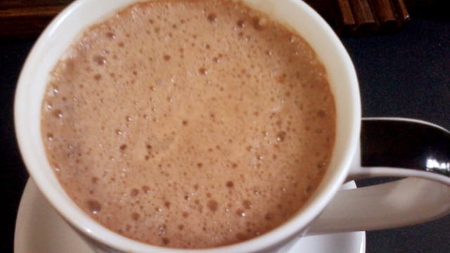 Coloque no liquidificador o café passado quente, o leite quente e 3 colheres de chocolate em pó solúvel 50% cacau.