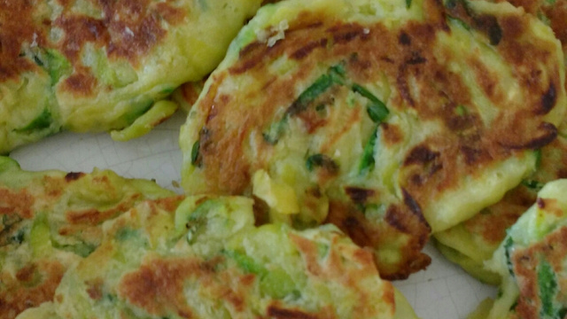 Unte a frigideira antiaderente com um fio de azeite e coloque a massa em pequenas quantidades com a ajuda de uma colher.