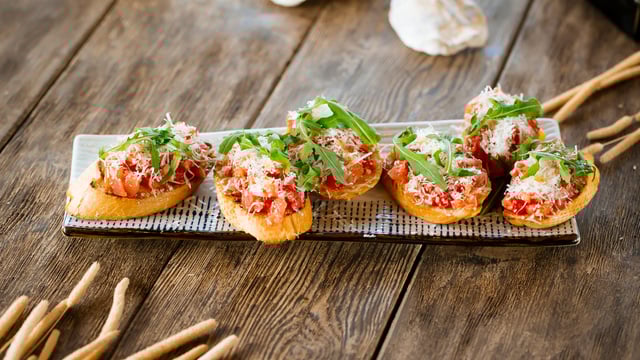 Pique os tomates em cubinho pequenos como se fosse um vinagrete e coloque dentro de um recipiente.