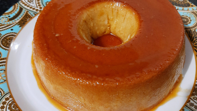 Em uma forma de pudim já caramelizada, coloque a massa e leve ao forno por 40 minutos ou até dourar as bordas.
