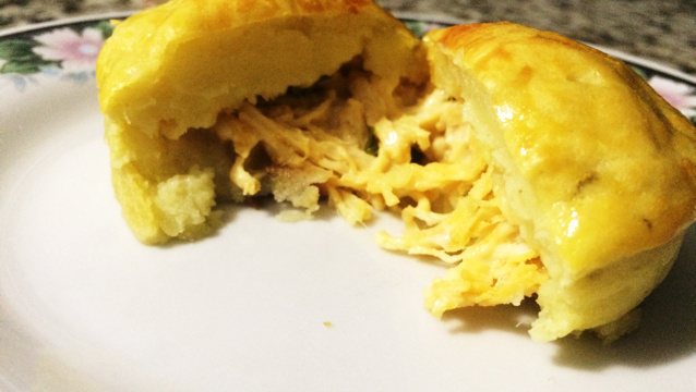 Cozinhe as batatas doces e amasse bem, misture o ovo e a farinha ate virar uma massa homogênea. Coloque a massa nas forminhas de empada e recheie com o frango desfiado e requeijão ou até mesmo outro de sua preferencia.