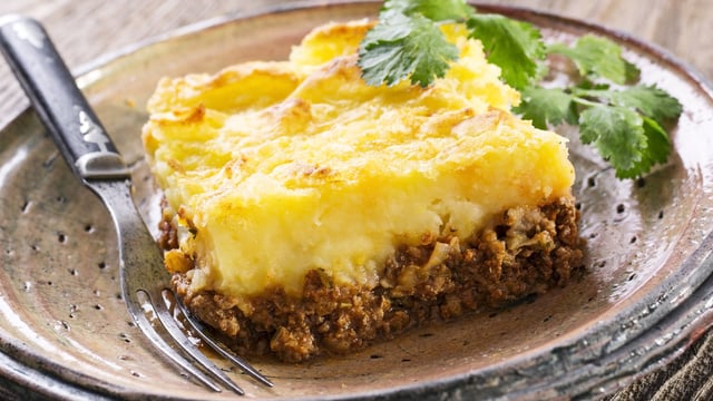 Coloque em um refratário a carne moída e por cima coloque o purê de couve-flor.