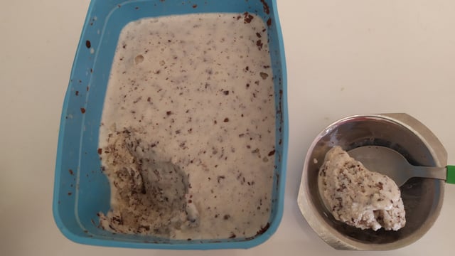 Quando endurecer bata o sorvete na batedeira por alguns minutos até ficar cremoso.