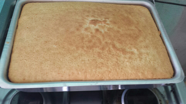 Quando a massa estiver homogênea, acrescente o fermento em pó e bata novamente.