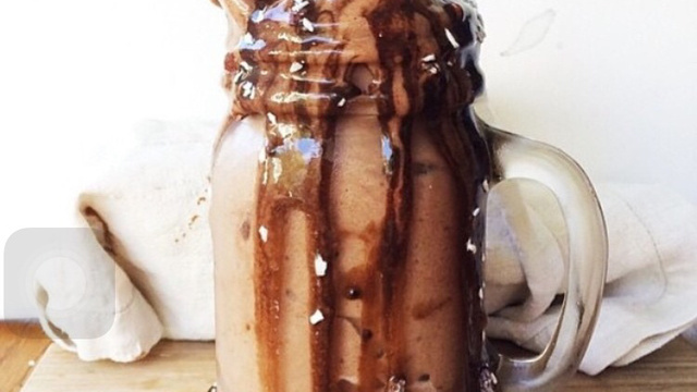 Bata no liquidificador as bananas congeladas com o cacau em pó.