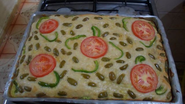 Pegue uma assadeira unte com óleo e despeje a metade da massa e acrescente o recheio e depois despeje o resto da massa e para finalizar bata um ovo peneirado e pincele a bola.