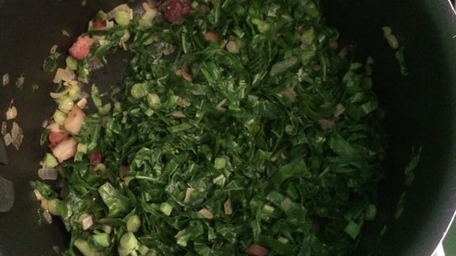 Coloque a couve mexa até murchar e tampe a panela por alguns segundos.