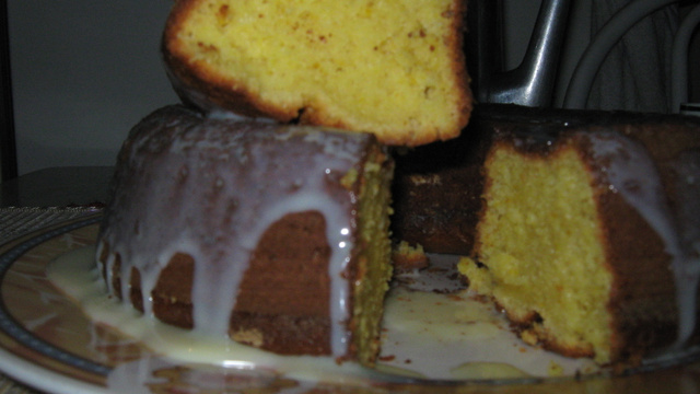 Bater os quatro primeiros ingredientes no liqüidificador e por tudo numa tigela misturar a farinha de trigo e o fermento a essa massa e assar.