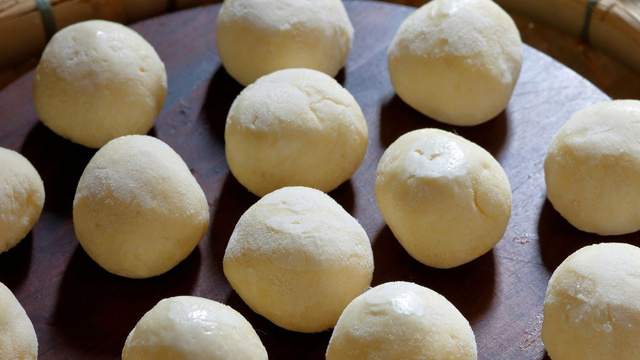 O segredo de um pão de queijo macio é sovar a massa bastante até virar uma liga só.