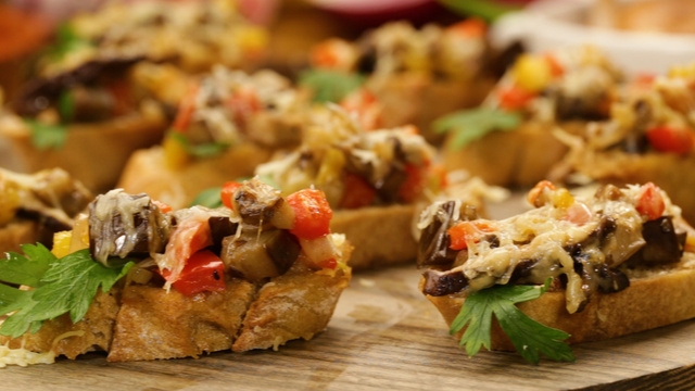 Coloque esta mistura sobre as fatias de pão italiano que foram retiradas do forno.