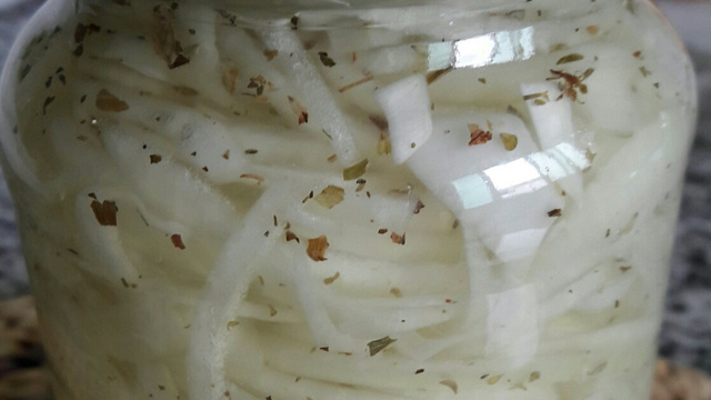 Esterilize um recipiente de vidro e coloque a fatias de cebola.