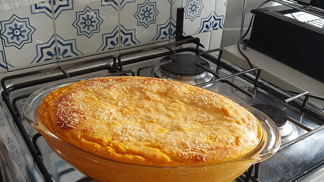 Retire do liquidificador e despeje num pirex untado com manteiga.