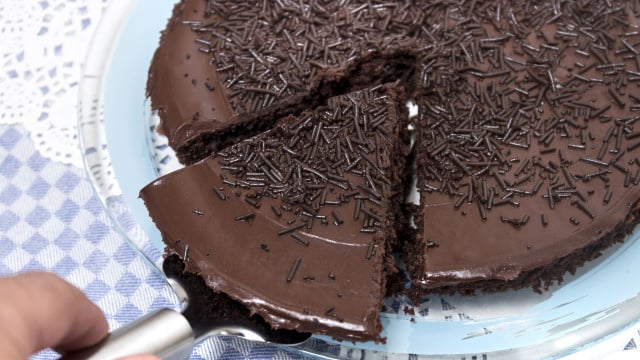 Coloque no fogo todos os ingredientes e deixe formar uma calda grossa, jogue sobre o bolo pronto e despeje o granulado.
