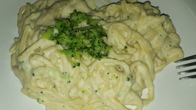 Após ter acrescentado tudo, espere engrossar, e em seguida, coloque o brócolis cozinho e picado no molho.