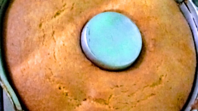 Coloque o bolo em uma forma de buraco no meio já untada e enfarinhada.